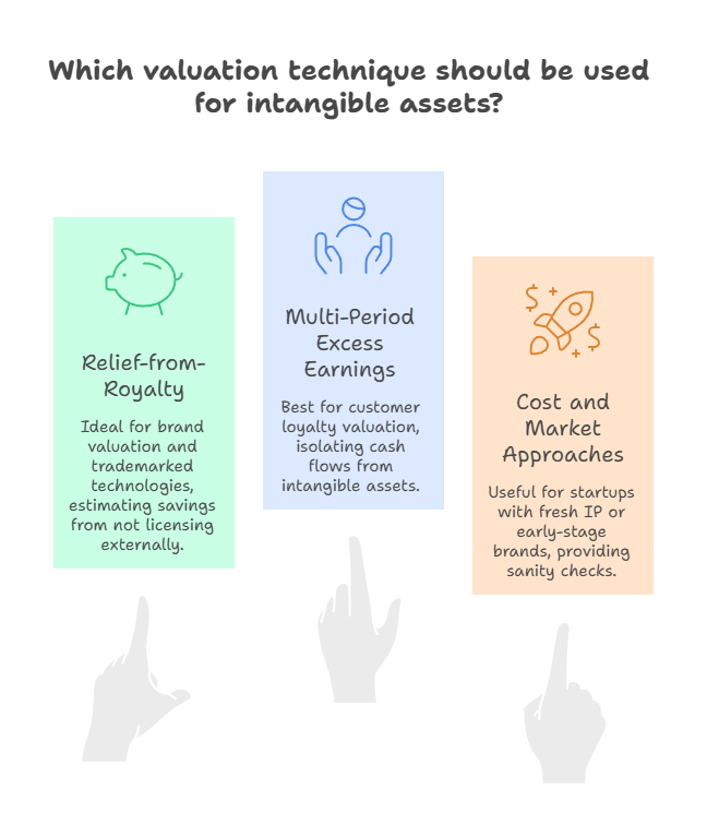 In some cases, the cost to recreate an asset—or benchmark market comps—can serve as sanity checks. These are rarely used in isolation but can be helpful for startups with fresh IP or early-stage brands.